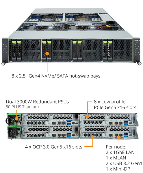 - Dual 3000W (240V) 80 PLUS Titanium redundant power supply