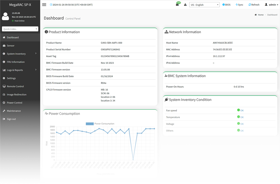 For management and maintenance of a server or a small cluster, users can use the GIGABYTE Management Console, which is pre-installed on each server. Once the servers are running, IT staff can perform real-time health monitoring and management on each server through the browser-based graphical user interface. In addition, the GIGABYTE Management Console also provides: